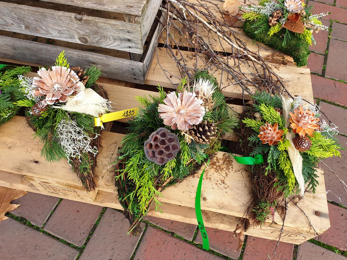 Zu den Gedenktagen bieten wir jedes Jahr in beiden Geschäften eine umfangreiche Auswahl an Gestecken, Kränzen und weiteren Grabschmuck an, der liebevoll von unseren Floristen gearbeitet wurde.